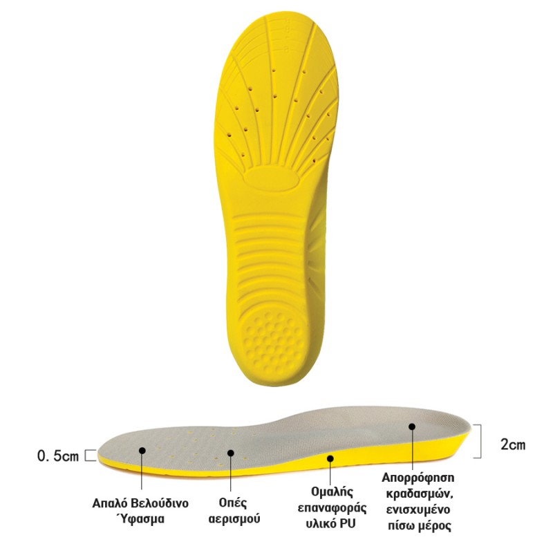 Άνεση και Υποστήριξη: Ο αφρός PU προσαρμόζεται στο σχήμα του ποδιού για εξαιρετική άνεση.